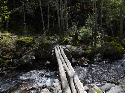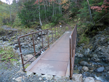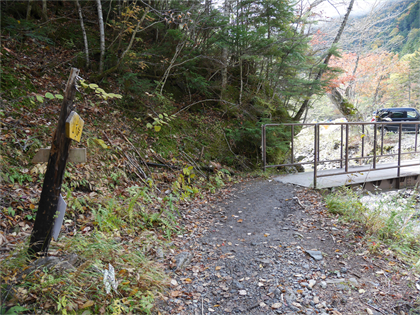| 小屋前の鉄橋を渡る | 分岐を栗沢山へ |