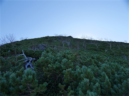 | 8:22 休憩後にアサヨ峰へ向かう | アサヨへ続く尾根 |