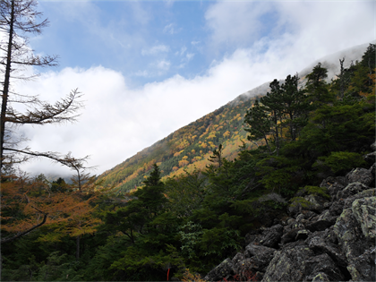 | 山肌が紅葉している | 12:02 仙水小屋 |