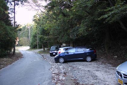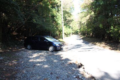 | 9:08 八風キャンプ場に駐車 | 駐車場横に通る砂利の林道へ進む |